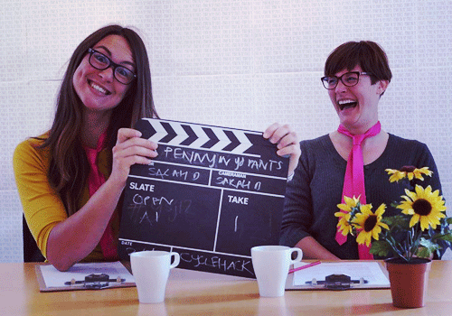 We start filming a crowdfund video to launch our penny product on Indiegogo. We film two. The first one doesn’t pack the punch we had first time around. It is unscripted and involves us doing handstands, dancing around and saying Penny in Yo’ Pants on camera without trying to giggle.
